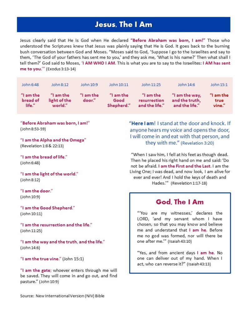 Jesus, The I Am Posted on February 7, 2023 by Tammie Edwards Share this: Click to share on X (Opens in new window) X Click to share on Facebook (Opens in new window) Facebook Like Loading... Related