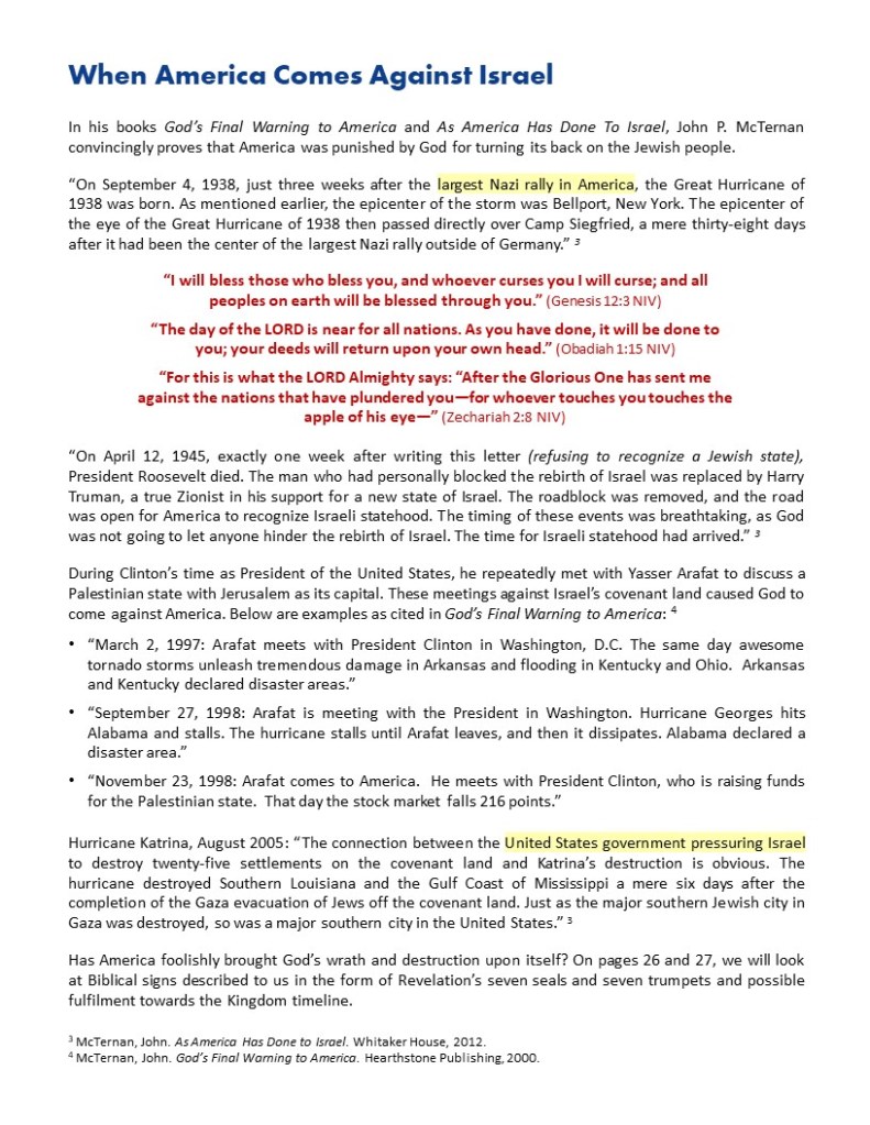 God is not going to ignore when we come against His will regarding the covenant land He gave to Abraham, Isaac, and Jacob. If you don’t believe the evidence provided, and you have a true relationship with God where you hear His voice in prayer, then just ask God. But if you don’t have that type of relationship with God, you must ask yourself why you don’t.