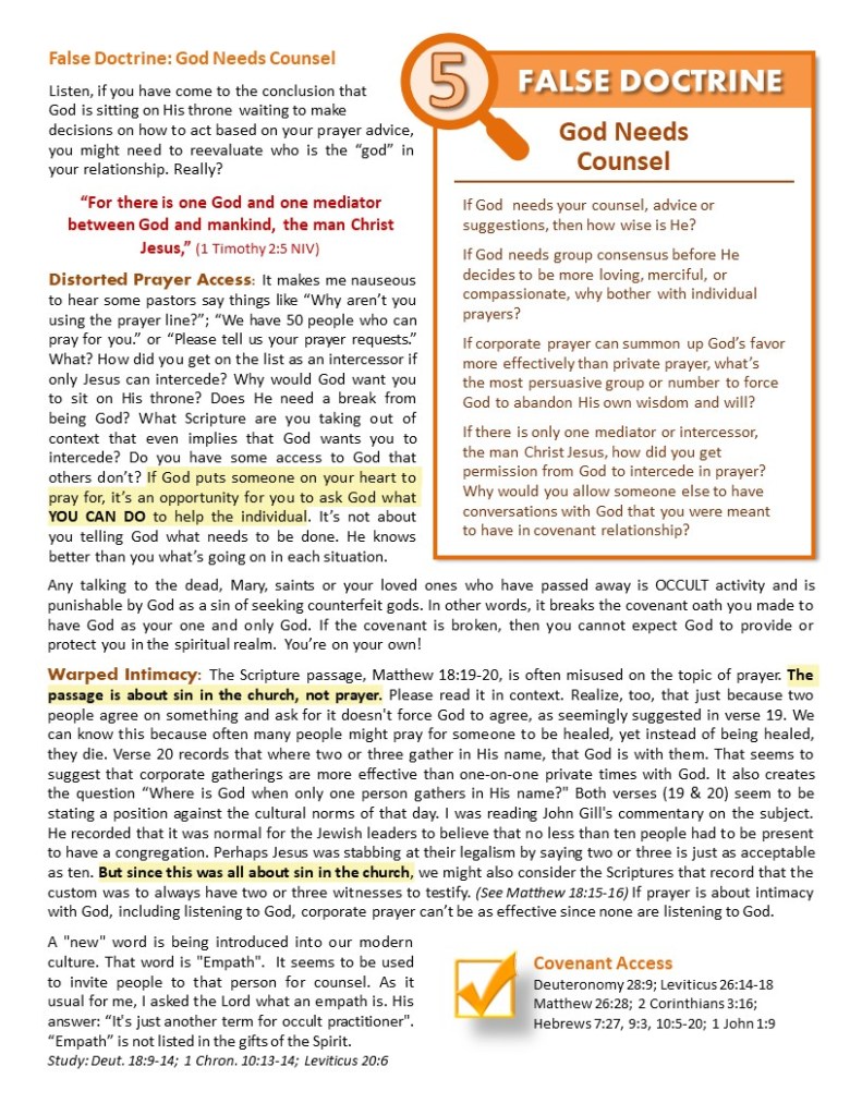 In yesterday’s post, we looked at what prayer intimacy should be. Yet, the prayers that we see modeled in the churches are very contrary to the Biblical picture of prayer and to our individual covenant relationships with God. If God needs counsel, then He’s not God.
