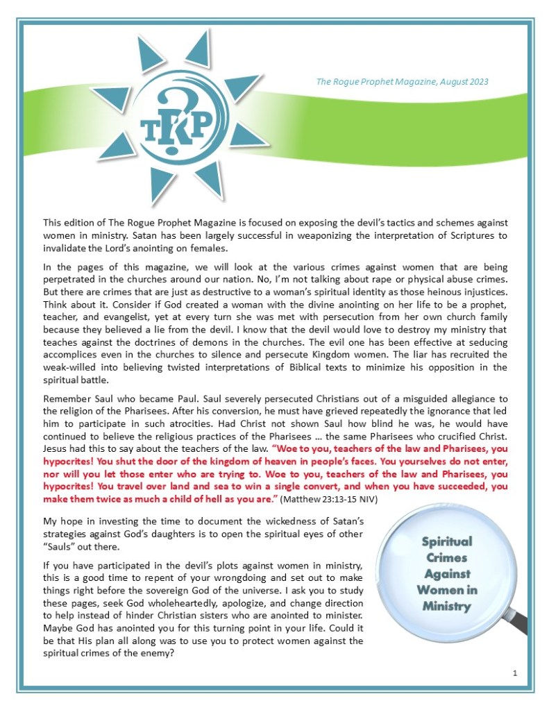 Introduction: Spiritual Crimes Against Women in Ministry Posted on July 6, 2023 by Tammie Edwards Share this: Click to share on X (Opens in new window) X Click to share on Facebook (Opens in new window) Facebook Like Loading... Related