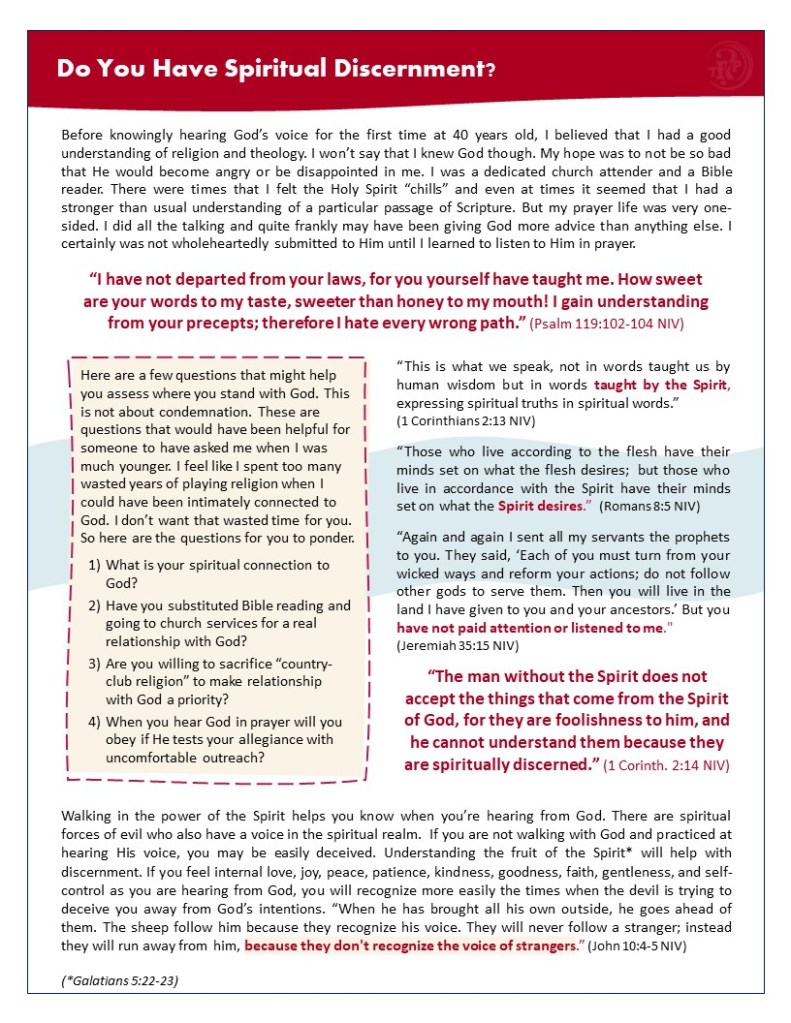 Spiritual Discernment Posted on July 18, 2024 by Tammie Edwards Share this: Click to share on X (Opens in new window) X Click to share on Facebook (Opens in new window) Facebook Like Loading... Related