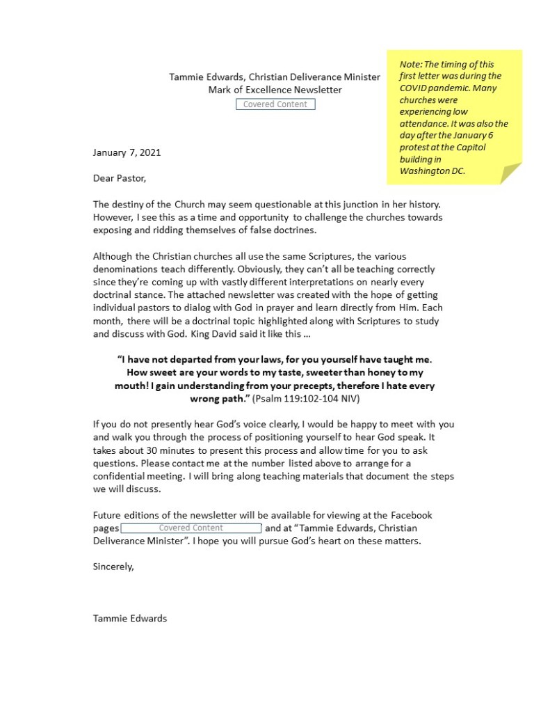 Attached is the first letter and newsletter sent to 24 pastors locally. Since January of 2021 has there been improvement in this area? Have any of the pastors sought God about their false doctrine of three gods? Unfortunately, it seems that they are still provoking God to vengeance against the congregations who sit quietly accepting that nonsense while they play the country-club religion game. They’re complicit with the false teachers and deserve God’s wrath. They are covenant breakers not covenant keepers.