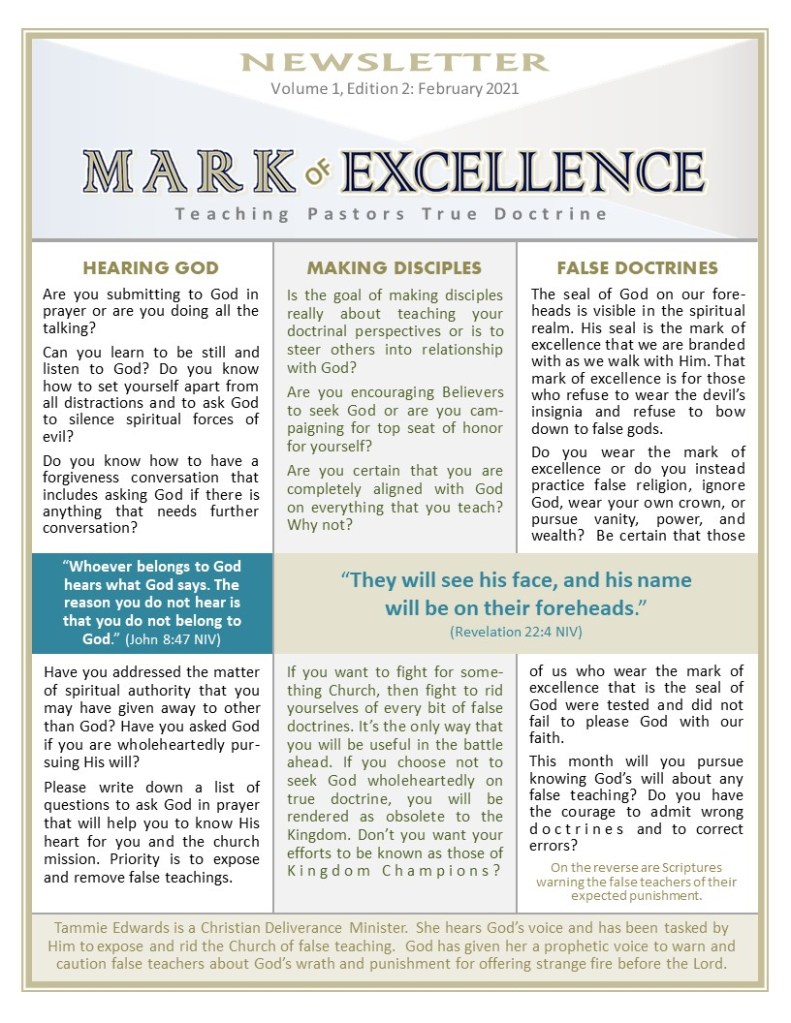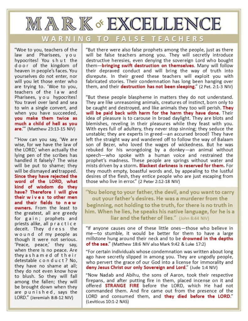 The attached letter from February 2021, was a communication to 24 pastors locally. The associated Mark of Excellence newsletter warned of God’s heart towards false teachers. What are your thoughts? Should God turn His back on them when they continue to teach falsely?