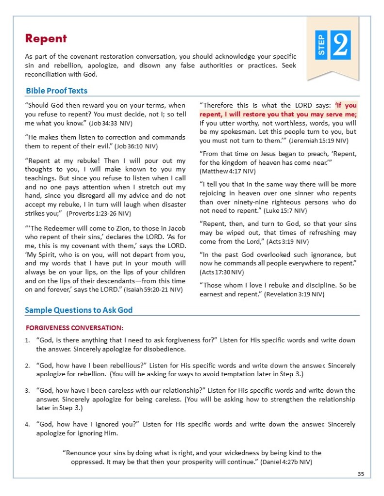 Step 2: Covenant Restoration (Continued Part 3 of 3)